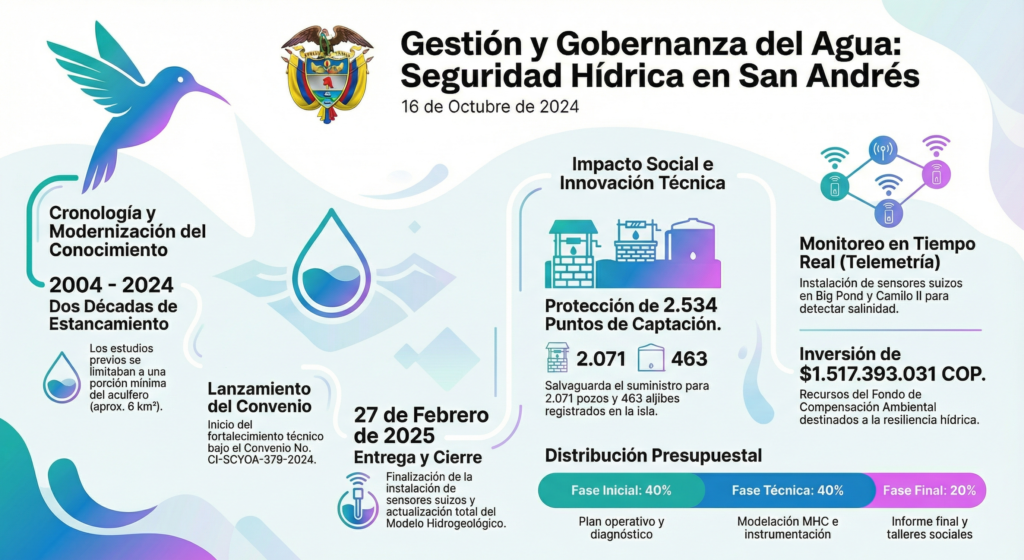 El Contrato Interadministrativo 379-2024 tiene como objeto optimizar la gestión del conocimiento y la información sobre los recursos hídricos en el marco del proyecto “Mejoramiento de la Capacidad de Gestión y Manejo del Recurso Hídrico para la Gobernanza del Agua en la Isla de San Andrés”.