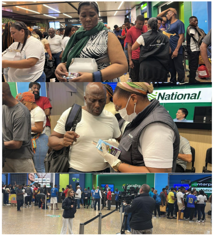 La ejecución se desarrolla en todo el territorio nacional, con énfasis en puntos de arribo estratégicos como Bogotá (aeropuertos El Dorado y CATAM) y Rionegro/Medellín (Aeropuerto José María Córdova). Asimismo, en Ipiales, en el puente fronterizo con Ecuador, se implementó una contingencia entre julio y agosto. Durante julio se atendieron 897 personas y en agosto se brindó atención a 128 personas.